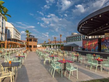 Очень старый, унылый, просящий о ремонте отель. Лифты с ободранным линолеумом на полу, не справляются с количеством гостей, приходилось ходить пешком по лестнице, с точки зрения фитнеса, очень полезно😂. Отель 5*, на самом деле 4-, ценник явно завышен, так как несоответствие бросается в глаза везде, начиная с питания и сервиса, завтрак стандартный, есть кофе из кофемашины, выпечка, омлет, это лучшее из питания. Обед и ужин очень плачевный для турецкой пятерки. Алкоголь отдельная тема, мы несколько лет живем в Анталии, можем судить, так что , то что предлагалось, было самого низкого качества, пришлось поехать в магазин за хорошим вином, решили не подвергать себя риску с отельными напитками. Просто в этот отель приехала моя давняя подруга и мы также приехали, чтоб встретиться, у неё было не очень хорошее впечатление от Турции , благодаря «стараниям» отеля, мы постарались убедить её в обратном🙂У отеля практически нет территории, вокруг очень шумно, постоянно движение транспорта, звукоизоляция оставляет желать лучшего. В номере ,кроме мыла в дозаторе , нет никаких принадлежностей, телефон не работает, сейф тоже, связаться с отельной службой можно только придя на ресепшн.В лобби и на ресепшене неуютно и тоскливо. В общем, как резюме, могу посоветовать категорически не выбирать для отдыха этот отель.