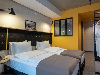 Это не 4*, а максимум 2. Все началось с заезда, нас никто не встречал на ресепшене. Шла уборщица, с которой мы поздоровались, но получили в ответ только презрительный взгляд. Она даже не позвала администратора, а просто продолжила заниматься своими делами. Пришлось подождать пока подойдет администратор. Администратор не знал кто мы, информации по заселению у него не было, он начал выяснять. Нашли бронь. После нас заселили в номер на 2 этаже. В номере нет сейфа, нет мини-бара. 2 бутылки воды были, но это всего лишь Welcome drink, как оказалось. Больше воду они не предоставляют бесплатно. Полотенец было 5 штук на двоих, хотя должно быть по 4 на каждого. И в отеле нет лифта, а завтрак на верхнем этаже. Все это говорит о том, что отель не 4*, и не может им быть. Завтраки очень скудные, выбора нет совсем, кофе растворимый.