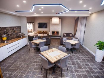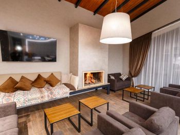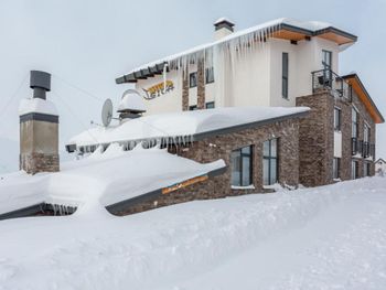 В первую очередь выражаю благодарность сотрудникам отеля, а именно Мерабу, Георгию, Уче. Отмечу Мераба и Георгия как людей, которые готовы отреагировать на любую просьбу, они очень внимательно относятся к гостям их отеля, большой вам человеческий респект. Уча - человек который создает настроение в ресторане, он очень хорошо знает блюда в меню, разбирается в музыке, да и в общем хороший собеседник. Номер оставил хорошие впечатления, уютный, функциональный и теплый. В ресторане можно не только вкусно поесть, но и посидеть слушая музыку, погреться у камина, познакомиться с постояльцами и поиграть в различные настольные игры. Огорчило отсутствие блюд "HALAL". Завтрак достаточно хороший, сбалансированный и разнообразный, все закуски красиво разложены, ну и самое главное очень вкусно. До подъемника отвозят и забирают по звонку, претензий никаких нет, очень удобно, не нужно тащить снаряжение пешком. Время в пути до подъемника занимает 3-5 минут.