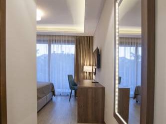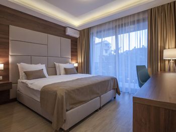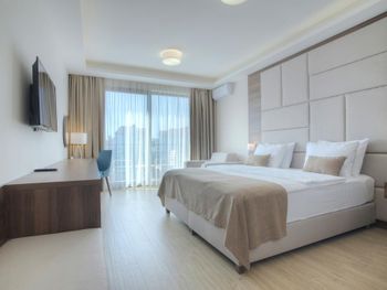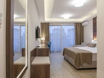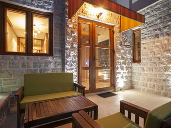 Небольшой семейный отель. Очень чисто , отличное обслуживание, сытный завтрак , прекрасный wifi . Просторная комната. Есть чайник , отличный холодильник, сейф. Справа в пяти минутах ходьбы супермаркет , слева отличный ресторан Коноба Бацун ,500 метров . До старого города 20 минут ходьбы . Есть стоянка для машины. Пять минут езды аквапарк.