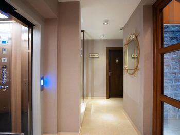 Ресепшн и вход в отель находится на высоте 1го этаж, к которому нужно подняться по лестнице. Если у кого-то проблемы с ногами или тяжелые коляски, учитывайте сей момент.
