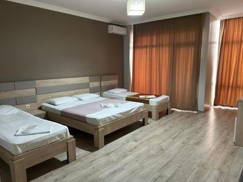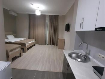 Отель удобно расположен, для тех, кто едет на верхний ларс. Есть парковка бесплатная, подземная. Номер большой, потолки высокие, есть балкон. Есть миникухня, но нет посуды для приготовления. Завтрак скромный, но вкусный. Есть сыр, из горячего суп, горячие пирожки, долма,все по-грузински вкусно. Персонал приветливый, отзывчивый, говорит по русски.