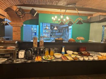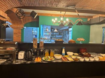 Фото завтрака не соответствует реальности, на самом деле завтрак очень скудный. Не смотря на то, что завтрак до 11-00, когда мы с дочерью пришли около 9-40 есть уже было нечего. Кофе на завтраке за дополнительную плату. Отель находится на крутом пригорке, на который сложно подниматься с чемоданом. Лифта в отеле нет. В номере не работает телевизор, одна из розеток, одна из чашек была грязной.