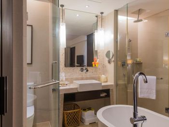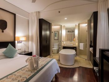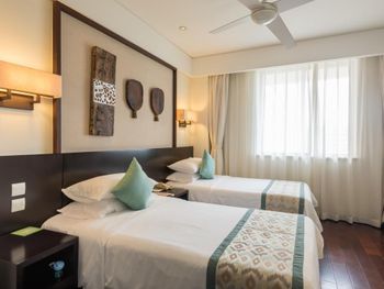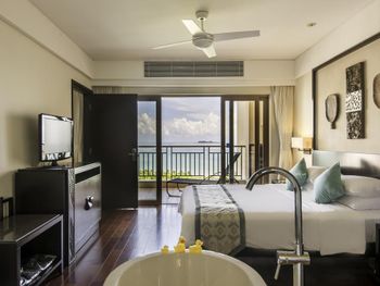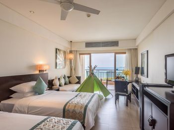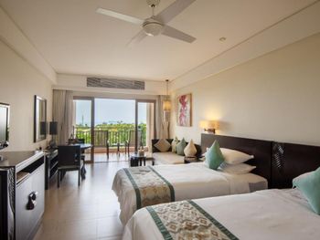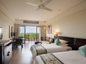 Rooms at Sanya Bay Howard Johnson Resort have a private balcony with sea views, garden views or pool views. Each is equipped with a cable/satellite TV and safety deposit box. Free in-room internet access is provided.