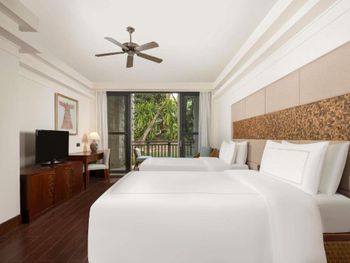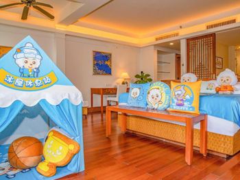 Великолепный отель, очень красивая территория в чисто китайском стиле. На территории три бассейна, один из которых с ноября начинают подогревать. Номер у нас был очень уютный, уборка и смена белья каждый день. Шикарные большие кровати с отличными матрацами. Персонал очень дружелюбный, улыбчивый, отзывается на любые просьбы. Мы отдыхом в отеле очень довольны.