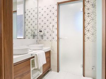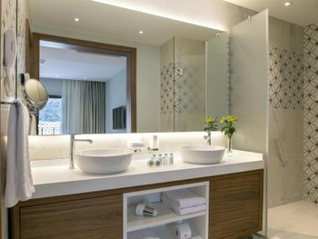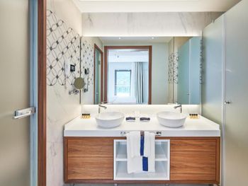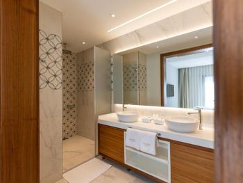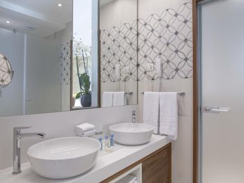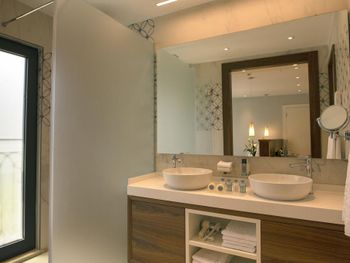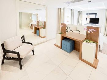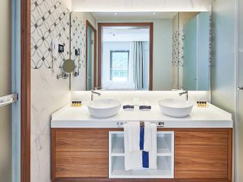 1) отсутсвие шумоизоляции в номерах. Вы слышите от все точки говорят ваши соседи, не говоря уже обо всем остальном. Это ужасно. 2) персонал не готов к загрузке отеля: - воду однажды просили (звонили) 5 часов подряд, так и не дождались. - воду после уборки не давали ни разу, надо звонить. Это 5 звёзд?))) серьезно?)))) - после уборки забыть дать ванные принадлежности? Ну это стандарт. - поливали растения - залили все лестницы водой сантиметра 3 лужи. Мы ладно, но те кто с детьми…. Упасть на мраморе можно очень сильно. 3) таблички «резерв» на пляже. Такого не видел нигде ни разу за 15 лет от штатов до сингапура. 4) в один из дней девочка официант на пляже просто отказалась обслуживать (еду нет, а говорит могу мол только напитки принести - а то смена скоро заканчивается) Вывод: менеджменту и овнеру срочно надо настроить работу. Иначе хороший отель потеряет клиентов.