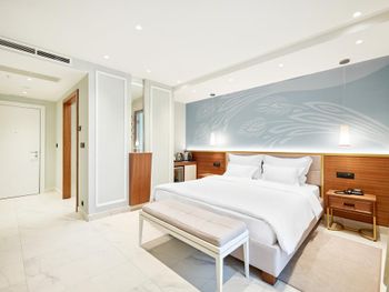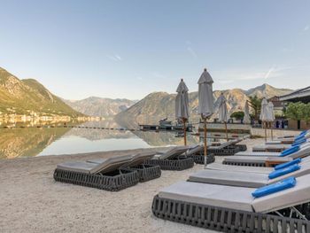 Пляж: лежаки были в краске или смоле, в итоге одежда была безнадежно испачкана, никаких извинений и предложений по исправлению ситуации не проследовало от персонала. Очень громко играет музыка, особенно вечером, если кто-то планируем отдохнуть в номере после пляжа, то шум музыки этого не позволит. Музыка играет до часов 11 вечера. Еда: на территории отеля нет ресторана, есть небольшой на пляже, но там никогда не было мест, чтобы покушать, в итоге нас отправили обедать в "идите по прямой, найдете что-нибудь перекусить" - выглядело как издевательство. Завтраки - это просто позор для 5-звездочного отеля, порции мизерные, еда - пожаренная в большом количестве масла - совсем не для утреннего приема пищи (нам принесли омлет размером с ладошку, весь в масле и еще сверху как украшение положили выжаренный маленький кусочек пршута). Номер: в целом неплохо - красивый вид из окна, супер удобная и большая кровать. НО! очень шумно из-за музыки на пляже, в номере НЕТ фена! Мне конечно принесли потом по просьбе фен, но он работал как старый дедушкин телевизор 1945 года выпуска. Итог: полное разочарование, не советую этот отель - цена совершенно не соответствует качеству, в Которском заливе есть множество прекрасных отелей с хорошим сервисом и приятными ценами, например: Casa del mare mediterraneo
