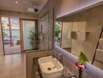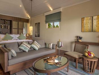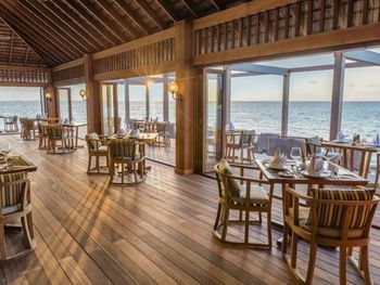 Прекрасные водные виллы, с большими верандами, полнейший чил. Четные на закат. Очень хороший, разнообразный завтрак. Все вкусно в JFK баре, хотя и дороговато (пицца 32$). В ресторане интересно, изысканные блюда, но тоже завышена цена.