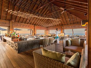 Прекрасные водные виллы, с большими верандами, полнейший чил. Четные на закат. Очень хороший, разнообразный завтрак. Все вкусно в JFK баре, хотя и дороговато (пицца 32$). В ресторане интересно, изысканные блюда, но тоже завышена цена.