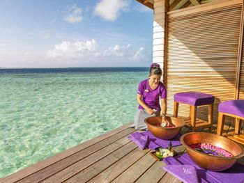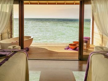 По приезду в аэропорт встречает сотрудник отеля и сопровождает на протяжении всего трансфера, по прибытии закрепляют персонального камердинера, который будет делать указы и бронирования. Быстрая и скрытая Уборка дважды в день, не нужно беспокоится о полотенцах, посуде итд. Даже стакан с водой и занавески перед сном будут на своих местах. Достаточно разнообразная программа на неделю, скучать не придётся. Самый большой Подводный ресторан, крутой опыт. Внутренняя быстрая транспортировка на гольф машинах, не нужно ехать на велосипеде в жару. Быстрый простой доступ в океан, богатый риф под отелем, хороший климат контроль, есть саунд бар для музыки. Большой выбор на завтрак, куча фруктов, доставка в номер.