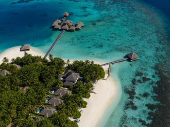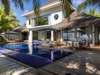 Были за десять дней в трех отелях высшего класса - этот лучший! Замечательная уединенная атмосфера, огромная и красивая вилла на воде. Еда - супер! Восхищались каждым блюдом. Внимательны к веганам, есть raw кафе, отмечают безглютеновые блюда. Очень красивый и легко доступный риф. Богатый животный мир. Огромные двухметровые акулы тусят прямо рядом с виллами (не устаешь поражаться). Разрешают трогать скатов (а в других отелях почему-то запрещали даже подходить). Вежливый и внимательный батлер. Шеф-повара в обоих ресторанах приходят спросить, как блюдо. Мы обязательно вернемся!