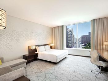 Очень удобное место расположения:из окна видно метро, рядом автобус, кафешки вокруг отеля очень вкусно готовят. Пообедали на троих от45-80дирхам