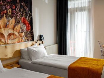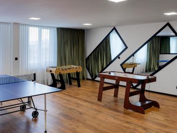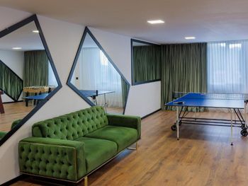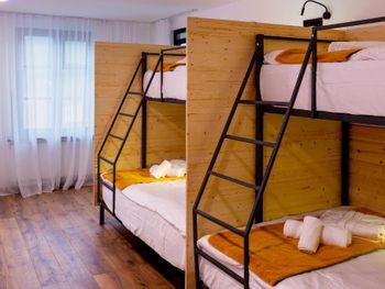 Это очень стильный отель с продуманной планировкой и деталями. Мы жили в семейном номере на 4 этаже: дети были в восторге от двухэтажных кроватей, взрослым было удобно, что есть две комнаты, кухня. Очень понравился тостер-духовка. Здорово, что была ванна в ванной комнате. Рядом с номером — общая гостиная-игровая, где были бильярд, аэрохоккей, настольный теннис, настольный футбол: всем этим можно было пользоваться, и это отлично. Очень вкусные свежие завтраки. Здесь делают отличные бельгийские вафли. Остальное — есть сыры, колбасы, творог с добавками, йогурт, хлопья, яйца разных видов, сосиски. Кофе только растворимый, но могут сварить по-турецки. Ресторан в отеле работает с 18:00, и там тоже очень вкусные блюда. Есть своя парковка во дворе, сушилка для лыжного оборудования. Позади и немного правее отеля (если стоять ко входу спиной) есть горка для снегокатов, каток, прокат ватрушек ( в гугл-картах называется «саночная горка Любимка»).