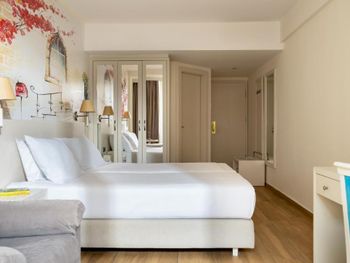 При заселении забирают на день паспорта и не возвращают при выезде, если не попросишь. Везде очереди, даже на рецепшн. Урезанное все включено- кофе на улице бесплатно, а в кафе в помещениях платный, это же касается и остальных напитков. Воду в бутылках не дают, нужно обзавестись своей пустой бутылкой чтобы они ее наполнили, при этом в номере не стояло даже приветственной бутылочки воды, минибар пустой. Чайника нет. Шкаф очень маленький и не удобный. Туалетных принадлежностей нет. Гель для душа и мыло не одноразовые, а висят в больших бутылях. Кондиционер еле работает, в 3 часа дня в номере 28 градусов, хотели заменить номер, но нам сказали что нам еще повезло что у нас не солнечная сторона, в других номерах еще жарче. Пляж узкий, не вмещает и половины желающих, лежаки платные 8-10 евро (почему не включить это сразу в стоимость номера?), чтобы даже платно занять лежак нужно бежать рано утром и оставлять полотенце. Если забыл маску в ресторан - покупай на рецепшн за 1 евро штука - это просто неуважение к клиентам. В ресторане всегда очереди, не хватает работников на раздаче, да и работают они с таким видом, как будто им все это так надоело и видеть туристов им противно. Всего два еле едущих лифта на большое количество номеров, в обед простояла 8 минут в ожидании. Отвратительно…