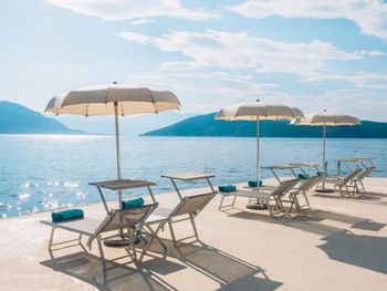 Большой пляж, много лежаков и зонтов, 2 летних бара, отличный вид из окна на море и горы, приветливый персонал, красивая территория