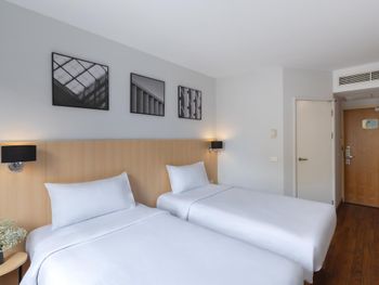 Был очень грязный и потрёпанный номер с пыльными стенами и вздутым паркетом (не в стиле Ибис), но после пары жалоб нас переселили в обновлённый номер.