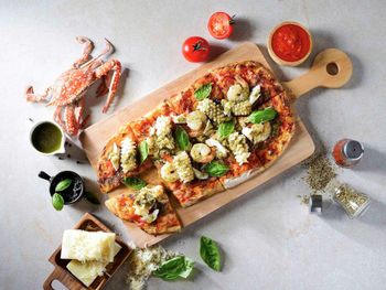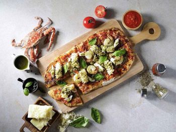 Мы пришли на ужин. Нас было 4 человека. Заказали бургер, куриные крылышки, пасту карбонара и пасту с соусом пестом пиццу