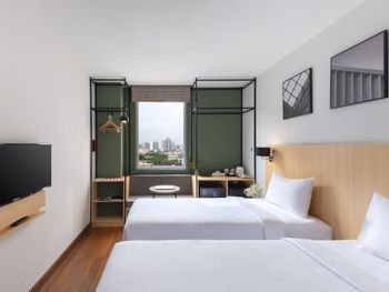 Номер "убитый", без регистрации лет 20, обшарпанный, плохо пахнущий. Я честно, в шоке. Не ожидала такого от Ибиса. Часто останавливаюсь в отелях этой сети, и всегда это было хорошо, при гораздо более низких оценках гостей. Здесь же, несмотря на высокий общий балл, 8.1, жилье не пригодно для проживания приличным людям. Я так понимаю отзывы накручены, они не соответствуют реальности.Я просила поменять номер, но мне отказали, сказали, что с животными сдают только такие номера. У меня кошка, умная породистая и аккуратная, она тоже была в шоке:)) после бронирования, невозвратного кстати, прислали сообщение, что одного питомца в номере оставлять нельзя. То есть сидеть целыми днями надо в номере.. Пробовала на ресепшен прояснить этот вопрос, мне сказали, что я могу кошку брать с собой на осмотр достопримечательностей Бангкока, в переноске. Как вам идея? В итоге мне все же пошли на встречу, разрешили уходить из номера:)) и конечно мой кошечка никаких хлопот никому не доставила