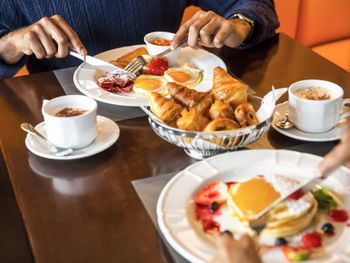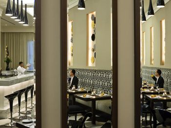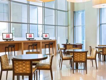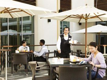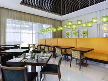 The Ibis Deira’s all-you-can-eat breakfast buffet includes fresh pastries, fair-trade coffee and a choice of eggs. The hotel features a café with 24-hour snack service, and a stylish international restaurant with a terrace.