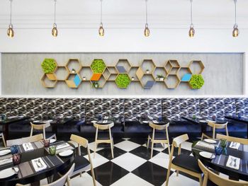 The Ibis Deira’s all-you-can-eat breakfast buffet includes fresh pastries, fair-trade coffee and a choice of eggs. The hotel features a café with 24-hour snack service, and a stylish international restaurant with a terrace.