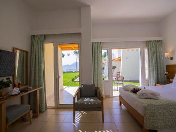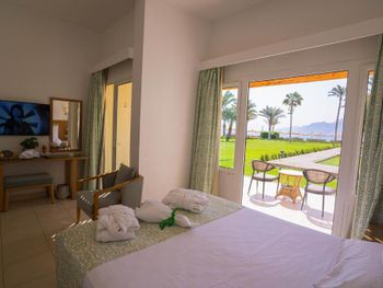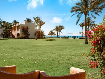 Самая зелёная территория из всех отелей в дахабе. Пляж на берегу лагуны, песочный, с постепенным понижением дна.. для детей самое то. Коралов нет. Можно заходить босиком... Какие в отеле потрясающе огромные газоны, по которым можно ходить босиком. . травка мягкая... номера в отеле разные, немного уставшие, но не критично. Жили мы в 178 номере на втором этаже. У номера огромный балкон, на котором приятно проводить вечера с видом на лагуну. Отель соответствует 4 звёздам Рекомендую