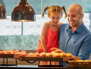 При бронировании выбирали 3 спальных места, но по факту была кровать и диван, для которого из спальных принадлежностей была только подушка. У нас был ранний вылет и договорились на ресепшене, что завтрак нам соберут в боксы в 5:30, в 5:30 пришел в буфет и ничего там не было, спустился на ресепшен - там сказали, мол мы без понятия, у нас такой инфы нет, поэтому остались без завтрака.