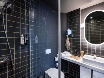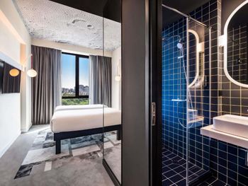 Не положили ни кофе, ни чай, вообще ничего в номер. Кружки стоят, стаканы стоят, чайник поставили тоже, а пить нечего — вот это прикол, конечно. Нет обслуживания номеров в отеле — это мне было сказано, когда я позвонил на ресепшен и попросил чай. Спускайся сам — тогда дадим. Ладно, но честно, впервые такое за 12+лет путешествий. У душевой в ванной стекло на месте стены в комнату. Видимо, дизайнер предполагал, что когда один будет там мыться, остальные смогут с кровати за сием действом наблюдать. Однако, это в бизнес-концепцию не очень вписалось, и в итоге поставили мутное стекло, ещё занавеской в номере его прикрыли для верности… Вот только нюанс в том, что когда кто-то идёт ночью в туалет и включает там свет, спальня тоже освещается при этом.