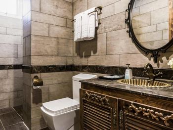 Плиточный пол в номере, из-за этого не сильно уютно. В остальном ок.