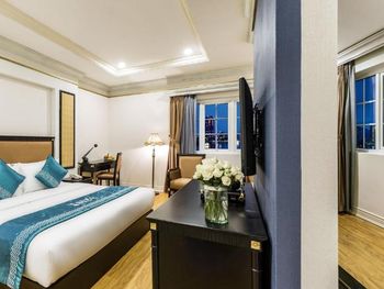 Заехали на пару дней на Новый год. Номер просторный, кровать большая и удобная, в душе порядок. Есть большой шкаф, письменный стол, зеркало, кондиционер. На крыше шикарный бассейн, небольшой тренажерный зал. Были включены завтраки.