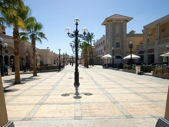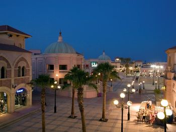 ТЦ прямо на территории отеля где магазины с копеечными ценами и аптека. Фишка отеля бассейны на крыше откуда открывается шикарный вид на закат над горами Синая!