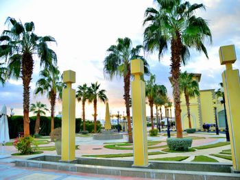 еда, ощущение что приготовлено все из несвежих продуктов, что вы не съели на завтрак то вам запекут на ужин, также на 2 м этаже постоянно пахло газом, иногда слезились глаза от этого( есть только один бесплатный пляж - palms beach, и там как в сочи- негде яблоку упасть