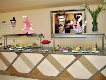 Большого выбота блюд нет, морепродукты через день. На 1 персону 2 креветки( соки разводные, фрукты нормальные.