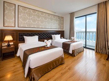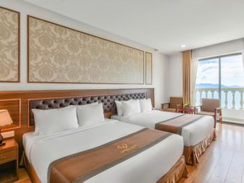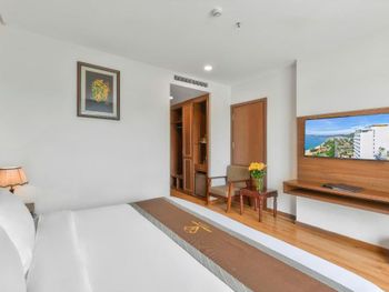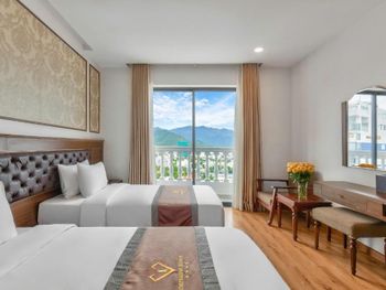 Потрясающе! Заселили намного раньше. Номер чистый, убирают ежедневно. В номере все необходимое есть: зубные щетки, расческа, шапочка, мыло, гель, шампунь, фен, полотенца, халаты, тапочки, водичка и тд. Персонал очень вежливый, внимательный, говорят на английском. Нам даже в 12 ночи принесли лёд, когда позвонили на ресепшн уточнить можно ли взять льда, хотя ресторан был закрыт :) Небольшой балкончик с видом на море, вдали от шумного центра, но недостаточно далеко, рядом есть все необходимое: магазины, кафе и прочее. А до центра неспешным шагом можно дойти за минут 30-40. Такси брали только однажды не обратном пути, отдали из центра около 3 долларов. Пляж прямо через дорогу, за шезлонги просят от 40 до 80 донгов, но если уйти чуть правее, то можно поваляться из под пальмами на заведомо купленной подстилке в магазине рядом (70-100 донгов), как сделали мы:) Так же бонусом вид не город (мы жили на 14м этаже). Прекрасные и достаточно разнообразные завтраки. Wifi стабильный. Бассейн небольшой,но чистый, при бассейне работает бар, можно заказать еду. В общем, сильно рекомендую:)