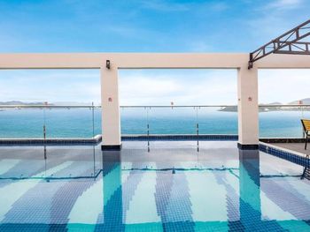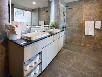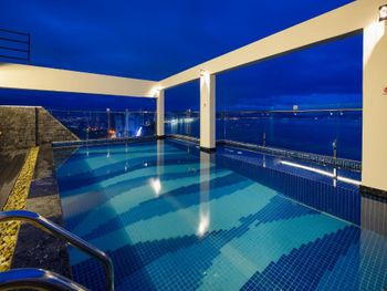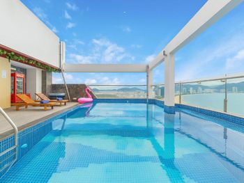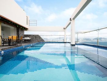 Понравился вид из номера, жили на 24 этаже, номер с балконом, балкон стеклянный, и лежа на кровати видно море, потрясающий вид. Хороший завтрак, много азиатской еды, на любителя, но есть сосиски, омлет, овощи, фрукты. Местоположение отеля - слегка в отдалении от центральной части, минут 10-15 пешком до начала активной жизни, зато на пляже рядом с отелем не много людей. Персонал очень рад, они всегда улыбаются. Бассейн расположен на верхнем этаже отеля очень красиво.