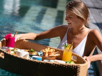 В ресторане очень вкусно, на ресепшене и в ресторане девочки очень приятные. После активного отдыха на Бали, здесь можно уединится и успокоится, словить дзен. Идеально райское место ☺️