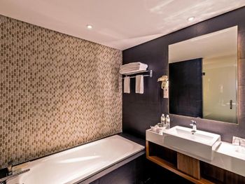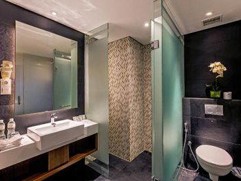 *это был наш последний отель в поездке, до этого были 3 других разные как по стоимости, так и по расположению, так что есть с чем сравнить* -Удивил вид из номера (вид в закрытое лобби, окно не открывается). Из-за этого номер очень тёмный, свет только внутренний. -Кондиционер так нам и не поддался, либо холодно, либо жарко, плюс из-за отсутствия окна, номер даже не проветришь. -Номера явно уставшие, телевизор не смарт тв, непонятно зачем он вообще нужен. -Странное решение раковина практически в номере (уже сталкивались с таким и это красиво и удобно, если номер большой, но размеры этого номера явно не подходят под такое решение, раковина в 50см от кровати и стены между ними нет) -Душ верхний не работал, одна зубная щётка отсутствовала (точнее была лишь открытая упаковка от старой зубной щетки) -В душе только мыло, без шампуня и всего остального. -Многие хвалили завтраки, нам они показались средними, фрукты невкусные. Мы сглупили и не увидели в сторонке место, где готовили яичницу (но обычно когда ты впервые идёшь на завтрак в отеле, на входе инструктируют, тут лишь проверили номер комнаты) -INFINITY POOL, который и привлёк внимание к этому отелю, оказался 2мя бассейнами на крыше размерами где-то 10×3 и глубиной в 1.5 метра (причем один из них детский). Плюс инфинити не совсем инфинити, тк бортики у бассейнов гораздо выше чем кажется по фото с букинга) -лежаков у каждого бассейна штук по 8-10. Мы сидеди на одном вдвоём. Непонятно как в таком немаленьком отеле может быть так мало лежаков. В общем мы останавливались на 1 ночь, но даже так не советую. Есть отели дешевле и лучше (по нашему опыту)