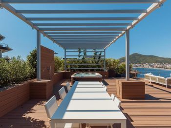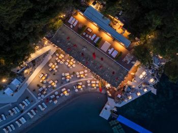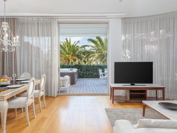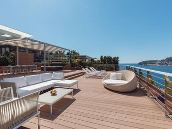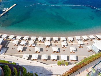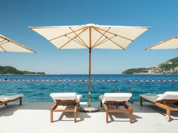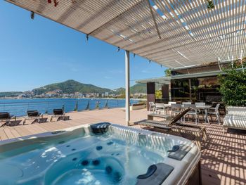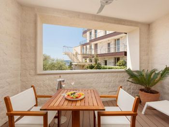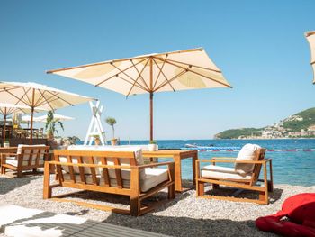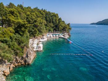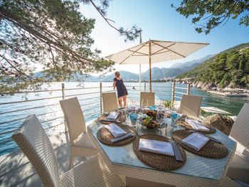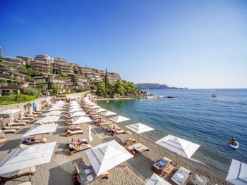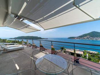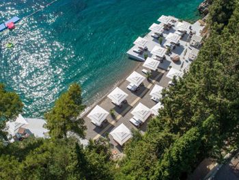 Прекрасная зелёная территория. Доброжелательный персонал, говорящий по русски. Чистое море и свой пляж. Удобная лодка трансфер до Будва.