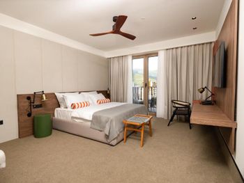 Номер весьма компактный, отель находится на холме. Бассейн скорее номинальный - только окунуться (маленький и мелкий)