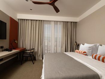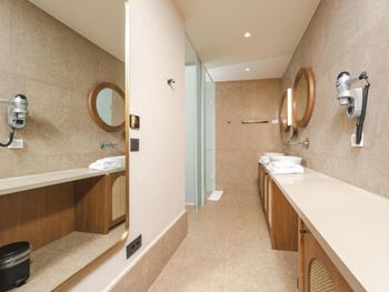 1. Гараж тесный, довольно сложно парковаться, на некоторые места при полной парковке и вовсе не встанешь. Плюс в помещение гаража выходит вытяжка от кондиционера из спортзала - стоит дикая духота. 2. Не обольщайтесь фотографиями спортзала - он совсем маленький. Больше, чем троим, там физически сложно заниматься одновременно. 3. Номер. У нас был улучшенный с балконом. Сказали, что номер новый, всего пару месяцев как сдается. При этом из санузла ежедневно доносился жесткий запах средства для прочистки канализации, а также канализация «булькала» каждый раз, когда соседи смывали воду в туалете. Утром обнаружила, что номер плохо убран - остались брызги от зубной пасты на плитке вокруг раковины, мы за один вечер явно не успели бы так напачкать. Через несколько дней обнаружила, что и пыль в углах не убирается. Свои волосы я собирала с пола сама. Постельное белье как будто синтетическое, с мелкими катышками от многочисленных стирок. Одеяло полутороспальное, тонкое по типу покрывала в пододеяльнике. 4. Завтрак. Я бы назвала его неплохим. Но лично мне было сложно что-то выбрать, поэтому я каждое утро брала почти одно и то же. Маленький выбор овощей и фруктов. Из еды в основном сладкая и несладкая выпечка. Выручали отварные яйца, помидоры и сыры. Кофе, как и везде в городе, невкусный и бесплатный, и за деньги на баре. Вместо натуральных соков дают разведенный концентрат. Я такого еще нигде не встречала. Кипяток почему-то тоже невкусный, перекипяченный. Из-за этого чай тоже получался несъедобным, со вкусом этого кипятка. Выпечка, недоеденная накануне, перекочевывала на следующее утро вперемешку со свежей. 5. В целом осталось ощущение, что за сервисом в отеле не следят, и всё держится на совести работников. В коридорах и между этажами всегда стоял неприятный запах грязного постельного белья.