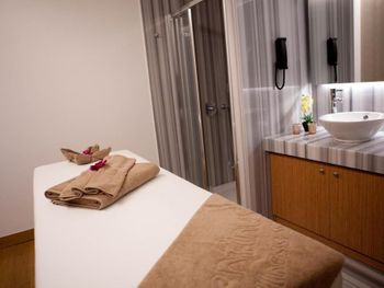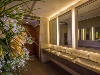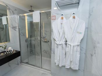 Не было полотенцесушителя, что странно тк сам с/у отлично оснащен, за исключением этого момента, - большая площадь, все в мраморе, отличный напор воды, большое зеркало, фен и выкладка косметики и конечной правильный комплект полотенец