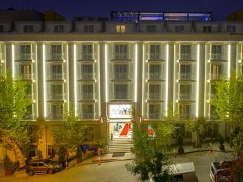 Отель расположен вблизи всех основных достопримечательностей. До станции Чимберлиташ 3-5 минут ходьбы. Рядом много кафе и магазинов. Отель красивый, номер трехместный был очень просторным. В номере есть все необходимое.