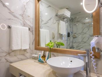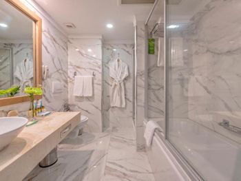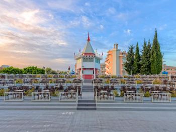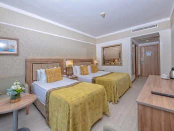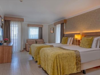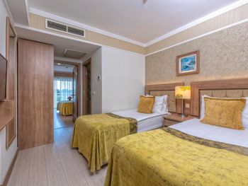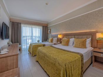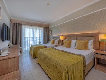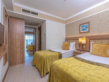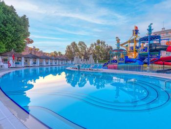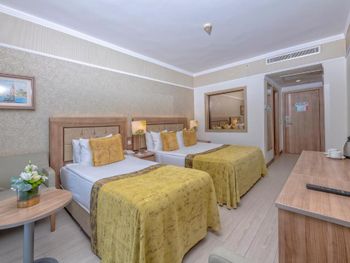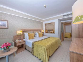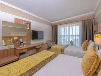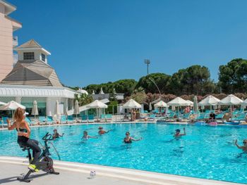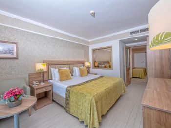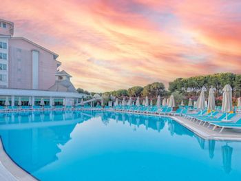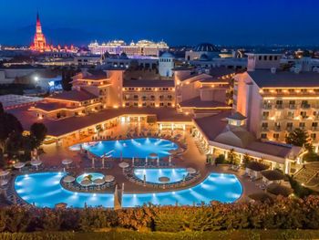Мы останавливались на 10 дней сентябрь-октябрь. Первое впечатление что сложно договорится на английском. Проживали в 1306 номере. Номер не много уставший, есть мини холодильник с напитками, фен и все другое что необходимо. Минус с чистотой размазанные зеркала а так в принципе нормально. Насчет зеркал, наблюдала заметят или нет размазанные зеркала но они так и не были вытерты. Они их протирают но просто эту грязь в другую сторону размазывают. Звукоизоляция плохая но отдыхать как бы не мешает. Только вечерняя программа длится до 23:00 до этого времени даже не выгодно идти в номер так как очень слышно прям как на улице. В отеле есть большой спортзал, внутренний бассейн, несколько бесплатных бань, массаж, парихмахерская, маленький маркет. Для детей много различных развлечений. Игровая площадка, горки для совсем маленьких и больших, каждый найдет чем заняться. Есть развлечения и для взрослых, стрелять из лука, аэробика в воде и т.д. Есть детская комната с аниматороми которые присматривают за детьми. В этом детском клубе дети пекли печенья,пиццу, делали свечку. Также за дополнительную оплату можно рисовать песком 10€, разукрашивать майку 12€. Есть полоса препятствий -10€, бильярд 5€ час оплата на ресепшене. Лучше иметь наличными. Разнообразная и вкусная еда. Много фруктов и овощей, точно каждый найдет себе что покушать. Вечером тоже бывают развлечения, детская дискотека, танцевальные удивительные программы. Есть фотоателье 10€ одно фото. Единственный минус с чистотой. Бары те которые на улице выглядит не очень эстетично. На обеде персонал не успевает убирать столы, очень редко кто подойдет предложит напитки. Лучше всего работает вечерняя смена молодые парни, и предложат напитки и только опустошили тарелки уже уносят посуду что с другими сменами могут стоять по несколько тарелок. Прям рядом с отелем находится land of legends если тут вам покажется мало развлечений. Там бывает вечерние шоу по вторникам и субботам в 22.00. Можно посмотреть на танцующий фонтан в 22.