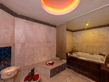 Ужасный оформленный Новый Год. Подача, качество еды, работа персонала на ноле. БОльше ни ногой. И все русские того же мнения. Сауны, хамам холодный. Коктейли делать не умеют. Алкоголь отвратительно го качества