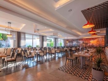 Отличная интерьерная, современная зона лобби. Чистота везде, светлый ресторан, вкусные блюда. Отличный матрас и подушки. Крытый бассейн отличный. Современное открывание дверей в зоне бассейна. До парка Ленд оф Легендс 7 минут пешком. Все понравилось.