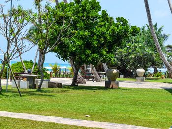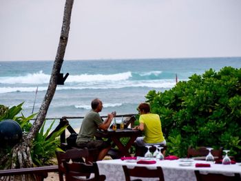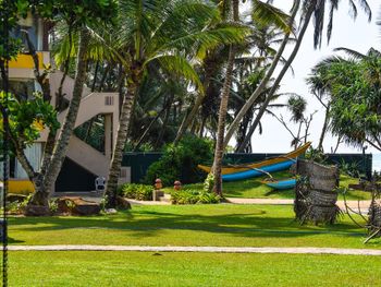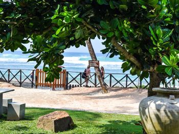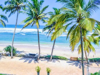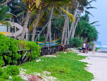 пляж небольшой, что редкость для Шри-Ланки и с кораллами, в которых сидят ежи, купаться можно, если вы любите плескаться у берега. нормальный пляж 10 мин по дороге.