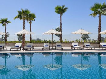 Отличный бассейн и пляжная зона; отель новый, свежий; отзывчивый рум сервис