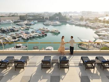 Большой отель со всей необходимой инфраструктурой, красивые и просторные холлы, где можно охладится в жару. Есть бассейн на территории отеля и спорт зал, отдельный пляж с бассейнами и детской площадкой, несколько ресторанов на выбор для вечера. Песок на пляже чистый, белого цвета. Полотенца и лежаки бесплатно. Там же есть автомат набирать воду. По территории отеля проходит набережная вокруг марины с лодками, идеальное тихое место для вечерних прогулок. Довольно много зелени на территории и вокруг, нет чувства, что ты в пустые. Быстрые лифты, практически никогда не ждали лифт, сразу приезжает свободный. У нас был очень красивый вид на сад и город, с другой стороны отеля вид на марину и залив, что тоже очень красиво. Очень богатые и вкусные завтраки, несмотря на то что еда одинаковая на завтраках, разнообразие очень большое, каждый день можно собирать разные блюда. Посадочных мест на завтрак много, завтрак аж с 6:30 до 10:30. Не смотря на то что отель построен уже давно, мы не почувствовали что он старый. Внутри все достаточно современно и чисто.