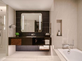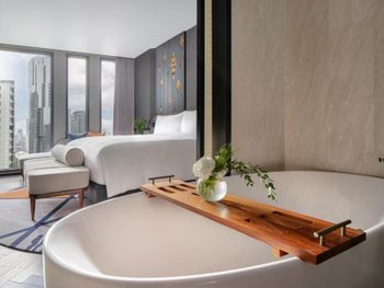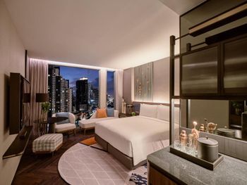 В номерах InterContinental Bangkok Sukhumvit by IHG установлен кондиционер, сейф и телевизор с плоским экраном. Среди прочих удобств — письменный стол, кофемашина, холодильник и мини-бар, а также собственная ванная комната с душем. В собственной ванной комнате есть гидромассажная ванна, бесплатные туалетно-косметические принадлежности и фен. Гостям InterContinental Bangkok Sukhumvit by IHG предоставляются постельное белье и полотенца.