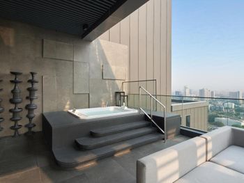 Хотелось бы лежаков у бассейна побольше и воду в нем потеплее, но как мы поняли, такие условия везде в отелях в центре Бангкока. Видимо какая-то местная норма))) еще нюанс, мы просили этаж повыше, но надо еще просить такой, чтобы вид не закрывало соседнее здание, у нас было наполовину)