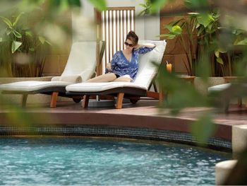 Останавливались на сутки по пути из Самуи, приехали в отель после экскурсии, в 17 часов, уставшие, на ресепшн пол часа делали вид, что оформляют документы, потом признались, что не работает система и ключ выдать не возможно , в итоге ждали ещё пол часа. Бассейн- практически не существующий, маленький, ледяной, джакузи не работает , в 11 утра выезжая из отеля попросили забрать багаж, в течении 20 минут никто не пришёл, в итоге , кучу чемоданов тащили сами.